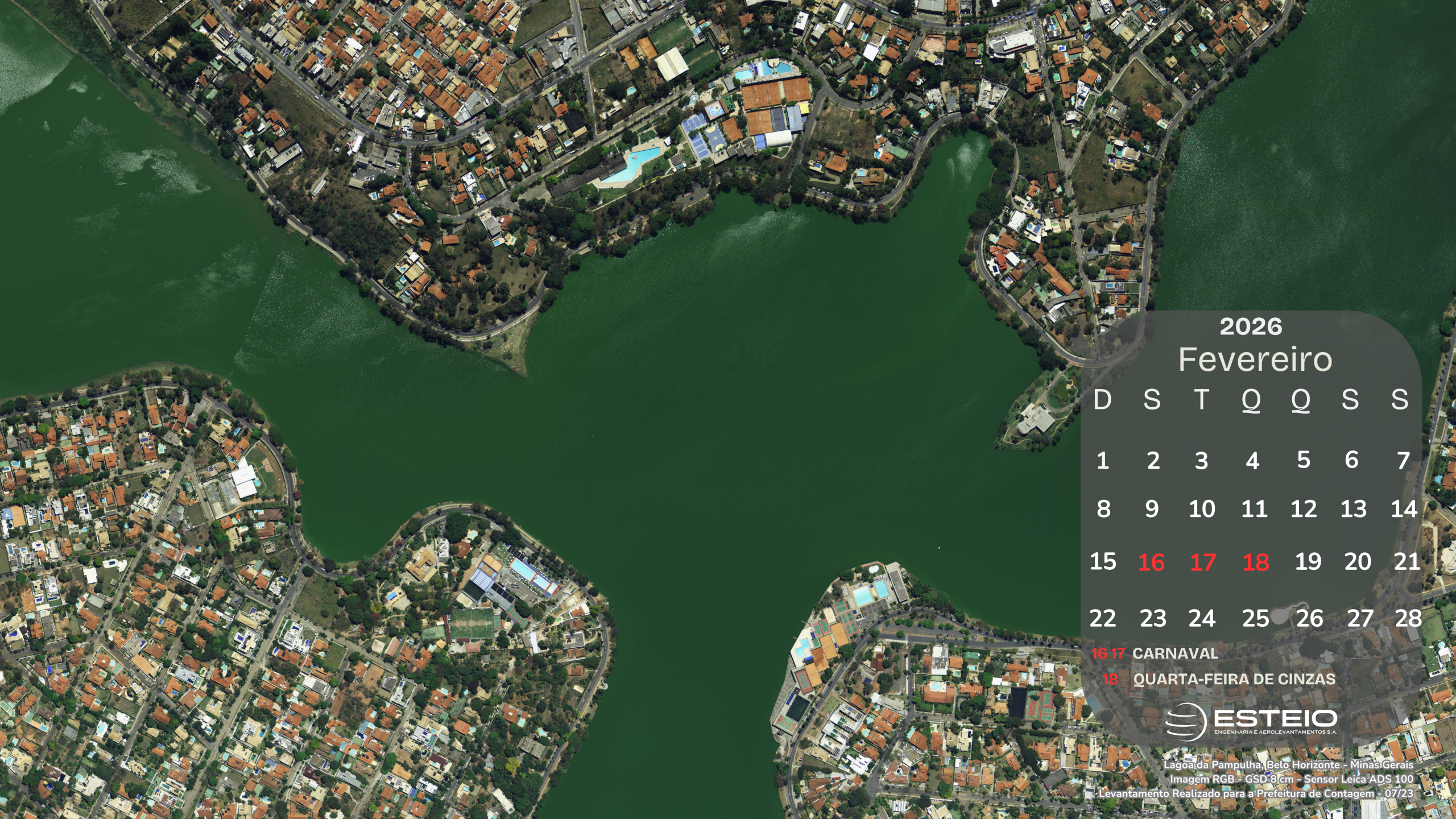 A ESTEIO irá todo mês, disponibilizar uma imagem aérea, com o calendário do mês corrente, durante o ano de 2026, para utilização como papel de parede nos computadores e outros dispositivos.